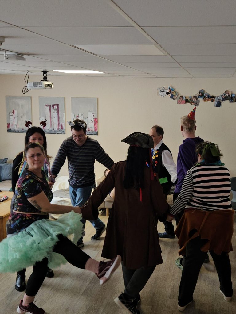 Mit viel Musik, bunten Kostümen und guter Laune wurde ausgelassen Fasching gefeiert. Spiele wie „Reise nach Jerusalem“ sorgten für Spaß und Bewegung bei Klient:innen und Mitarbeitenden gleichermaßen.